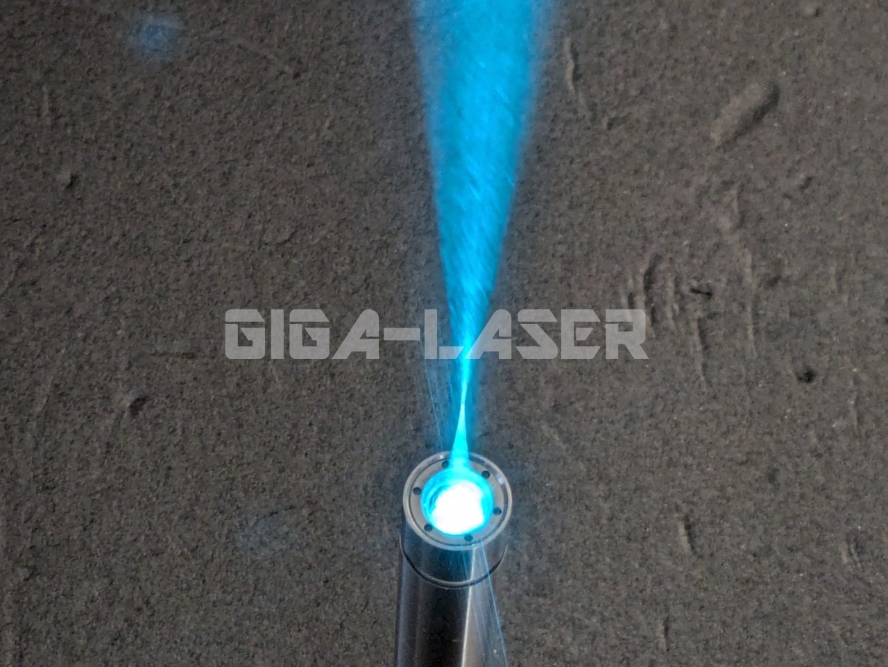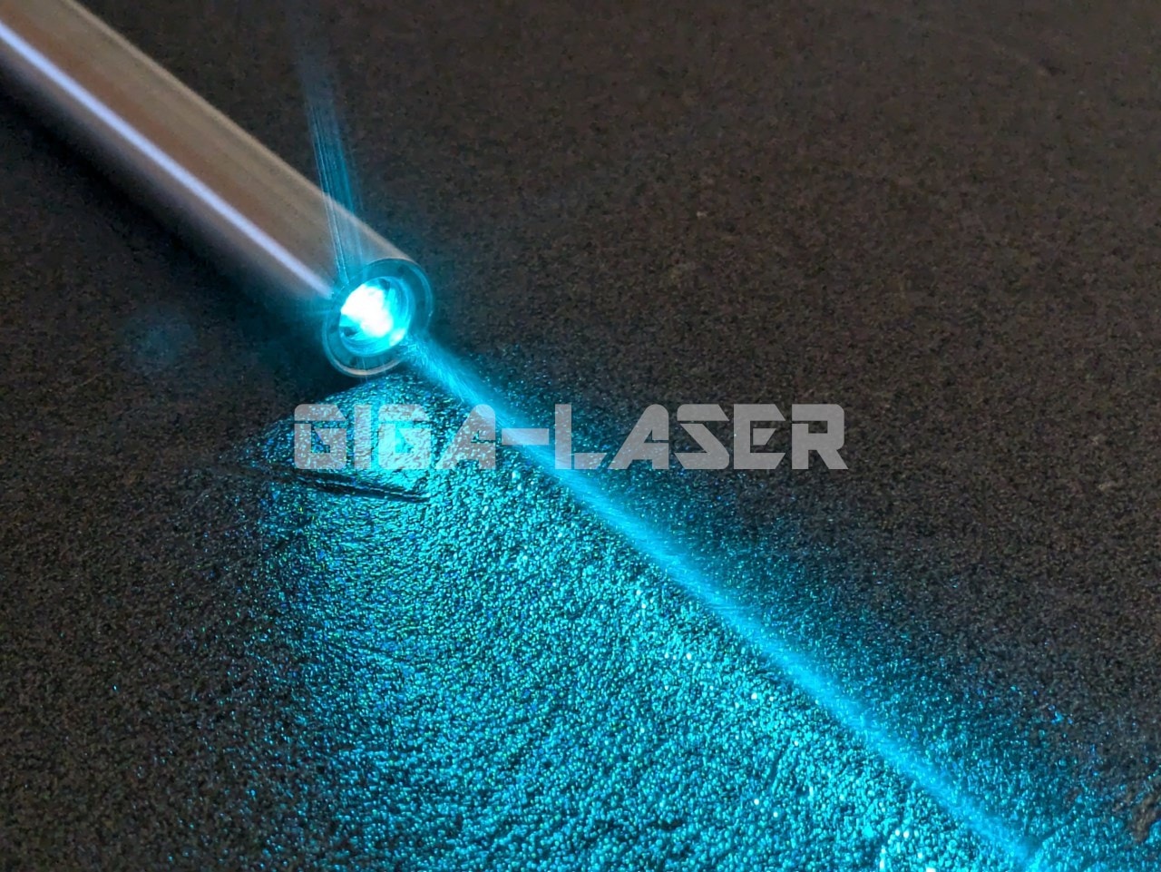 非常にきれいな色味のシアンレーザー光。